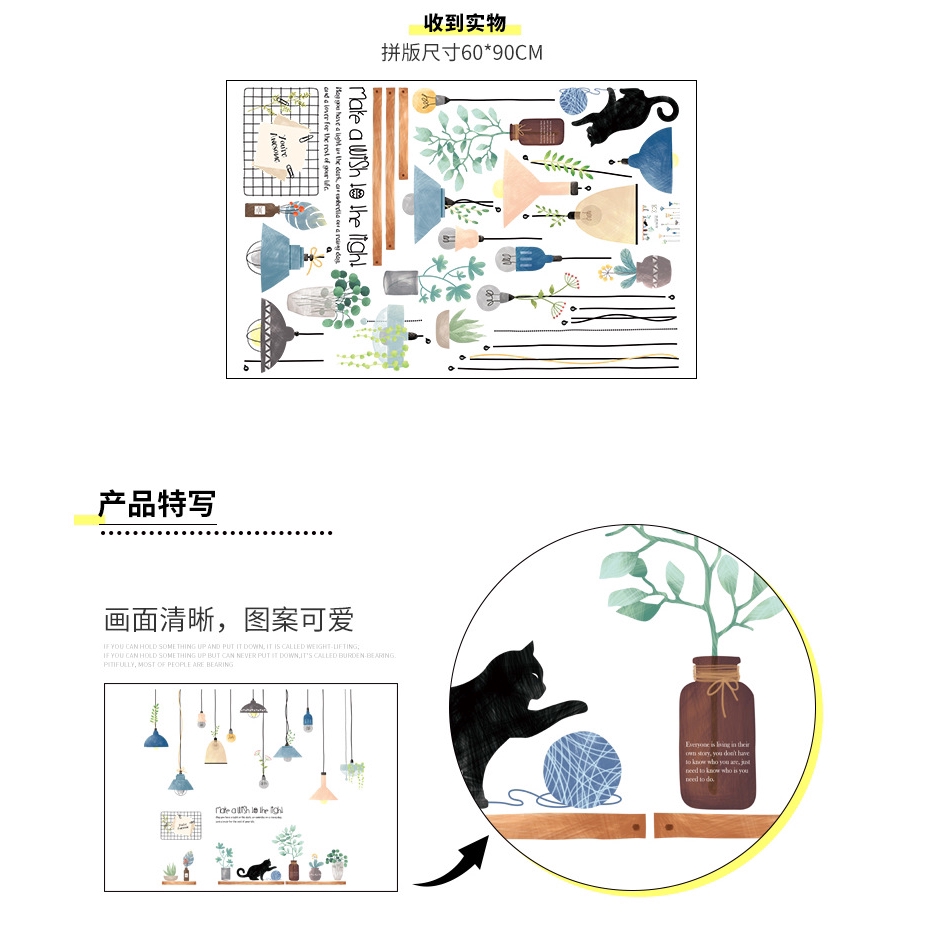 Wallpaper Tempel Dinding Motif Gambar Kartun Lampu Gantung Pot
