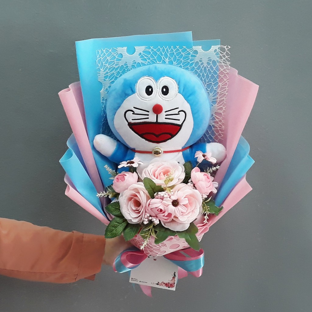 Bouquet Buket Bunga Boneka Doraemon Kado Ultah Wisuda Anniversary