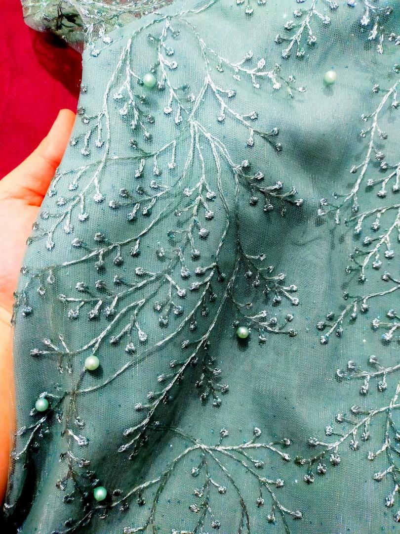 Dress Pesta Tile Bunga Glitter Lengan Pendek Transparan Hijau