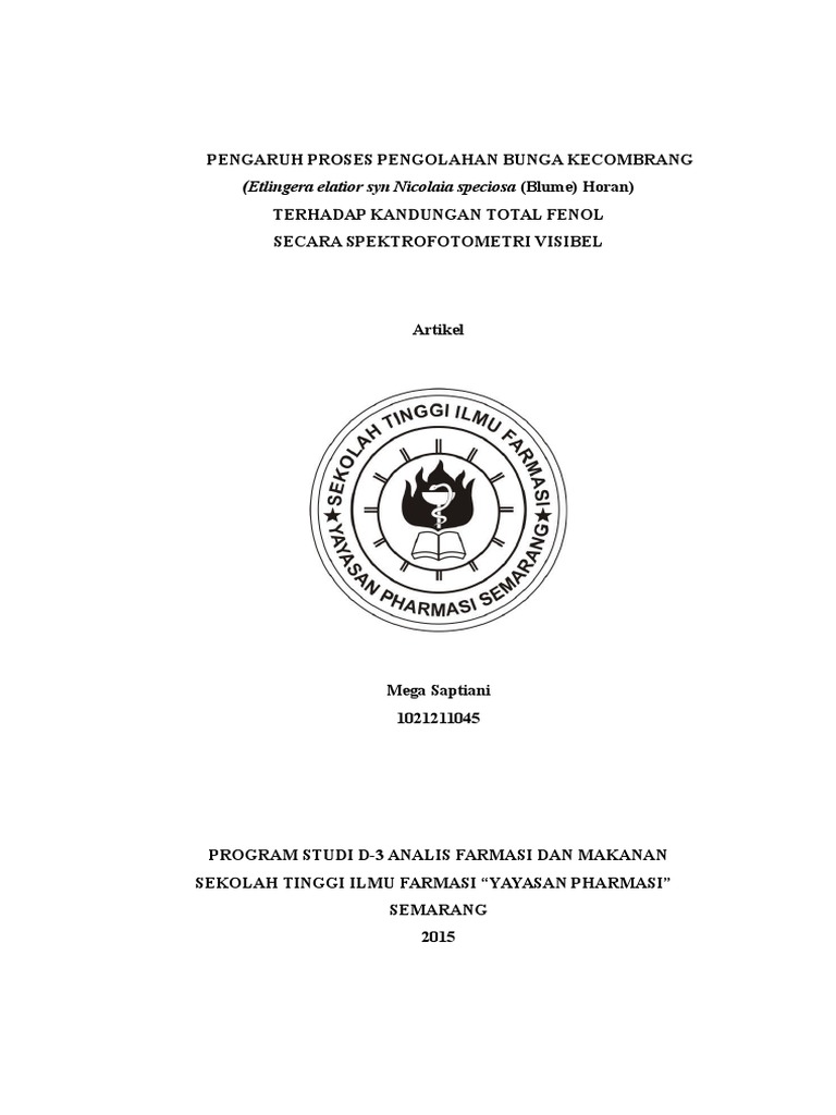 Artikel Pengaruh Proses Pengolahan Bunga Kecombrang