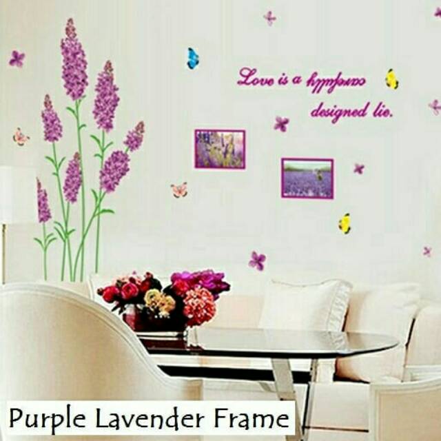 Wallsticker Lavender Frame Hiasan Bunga Bunga Ungu Hiasan Foto