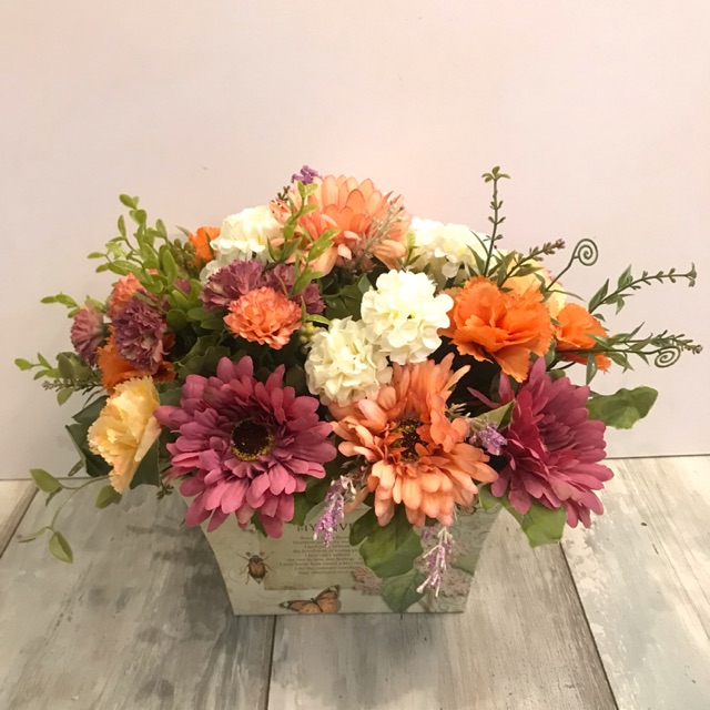 Rangkaian Bunga Meja Gerbera Orange Fuschia Putih Untuk Di Meja