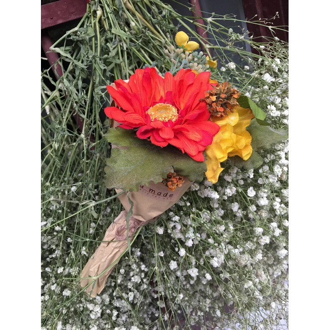 1 Buket Bunga Gerbera Gaya Pastoral Rustic Bahan Kertas Kraft