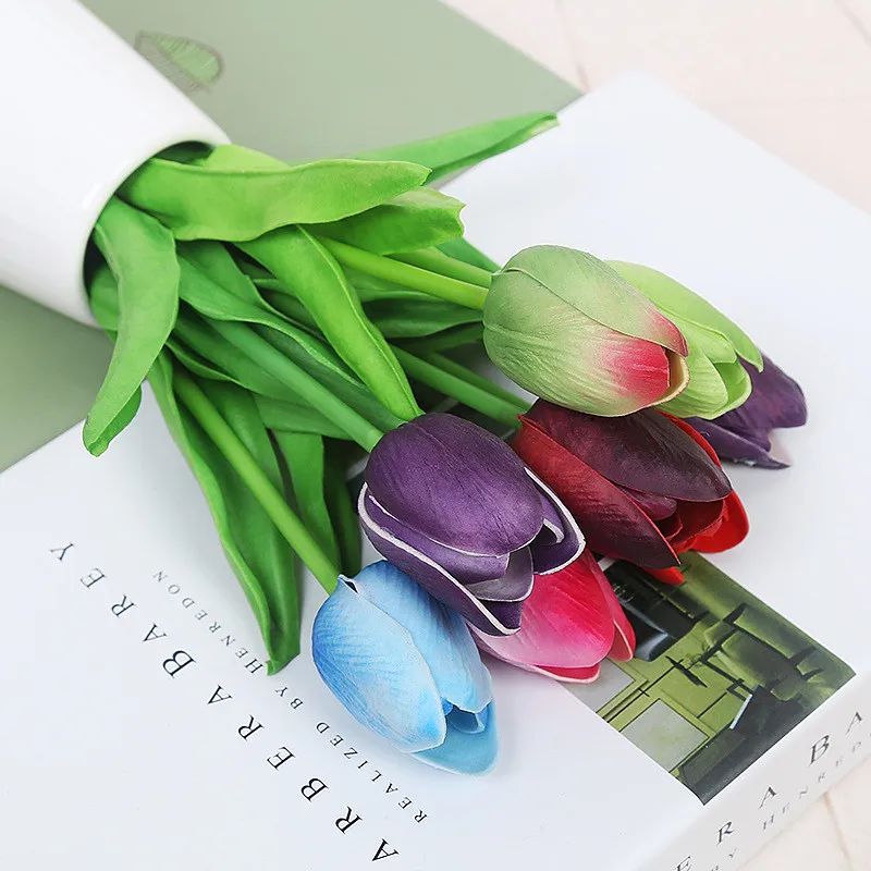 Kualitas Tinggi 1 Pcs Pu Tulip Bunga Buatan Sentuhan Nyata Bunga