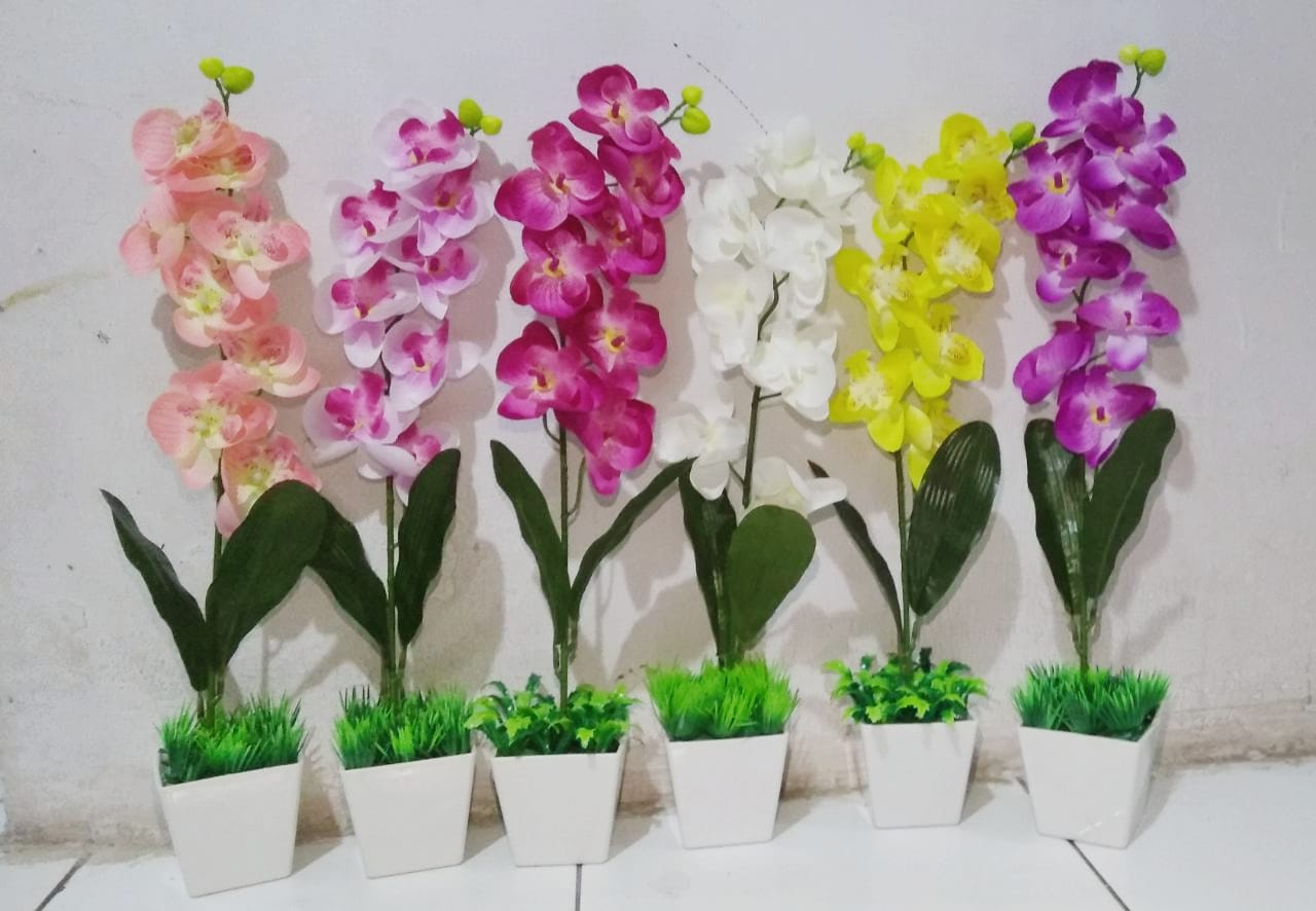 Bunga Artificial Plastik Hias Anggrek Premium Latex Pot Keramik
