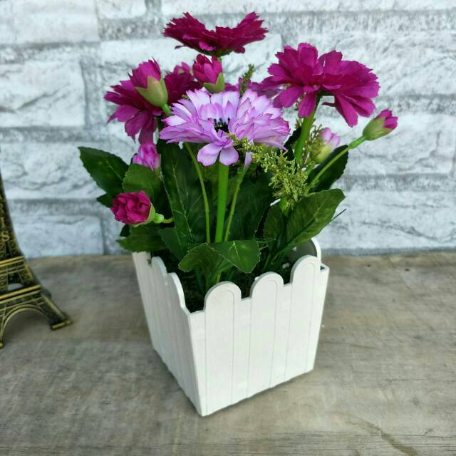 Set Bunga Plastik Gerbera Dengan Pot Pagar Plastik Kecil Shopee