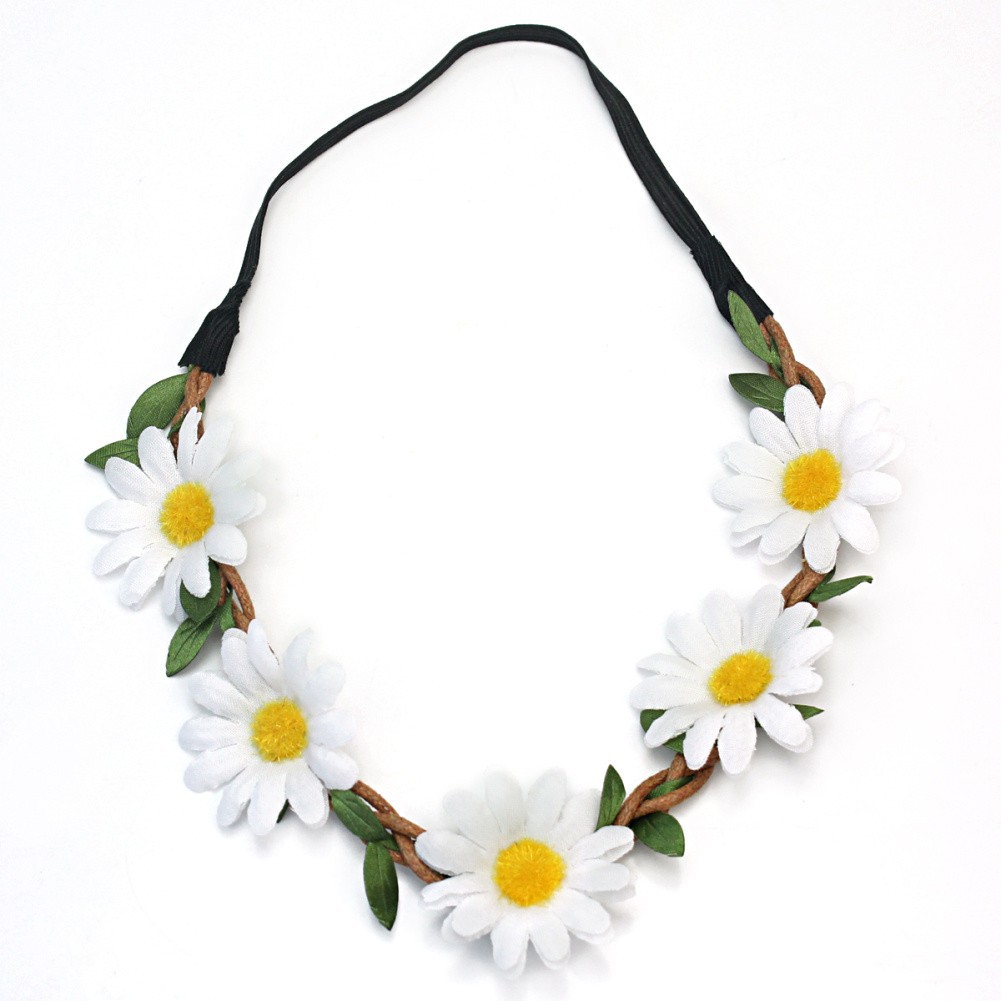 Bandu Elegan Corak Bunga Daisy Putih Bergaya Bohemian Untuk Pesta