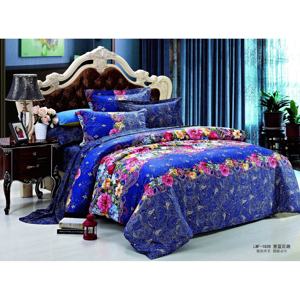 Sprei Katun Jepang Motif Biru Batik Bunga Mawar Merah Pink