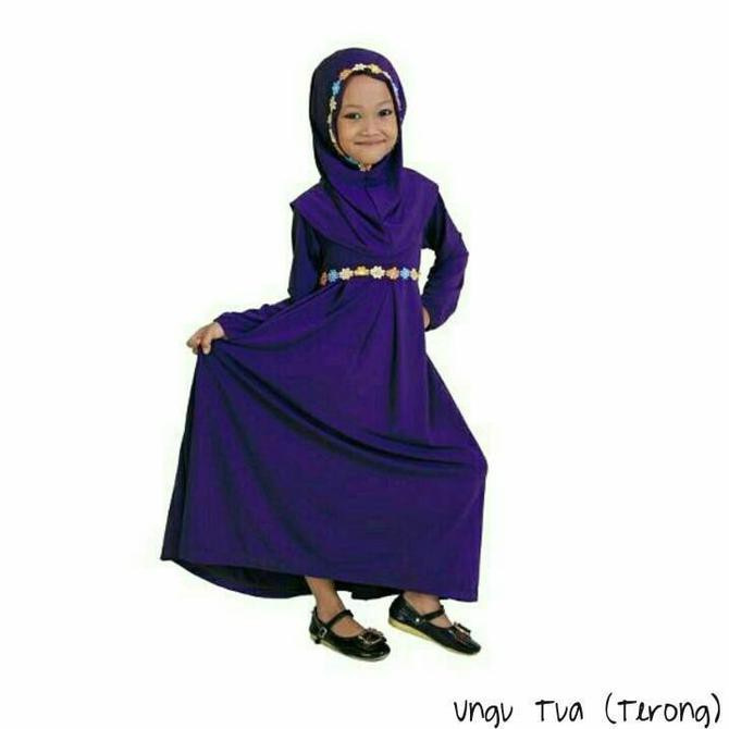 Baju Muslim Gamis Anak Perempuan Rempel Bunga Melati Warna Ungu