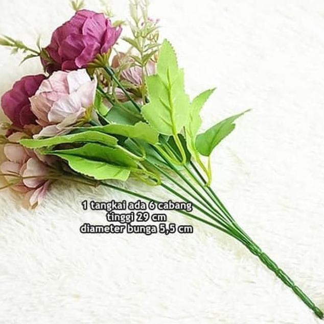 Bunga Peony 6 Cabang 2 Warna Artificial Plastik Dekor Shabby Murah