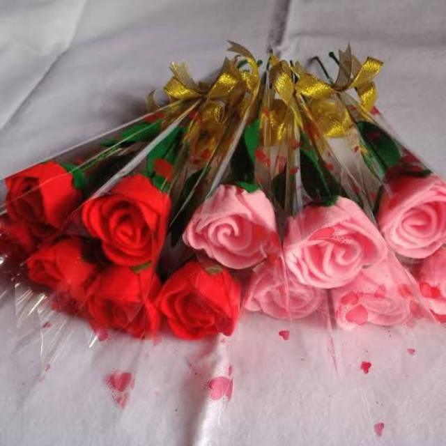 Bunga Mawar Tangkai Kemas Plastik Mawar Flanel Setangkai