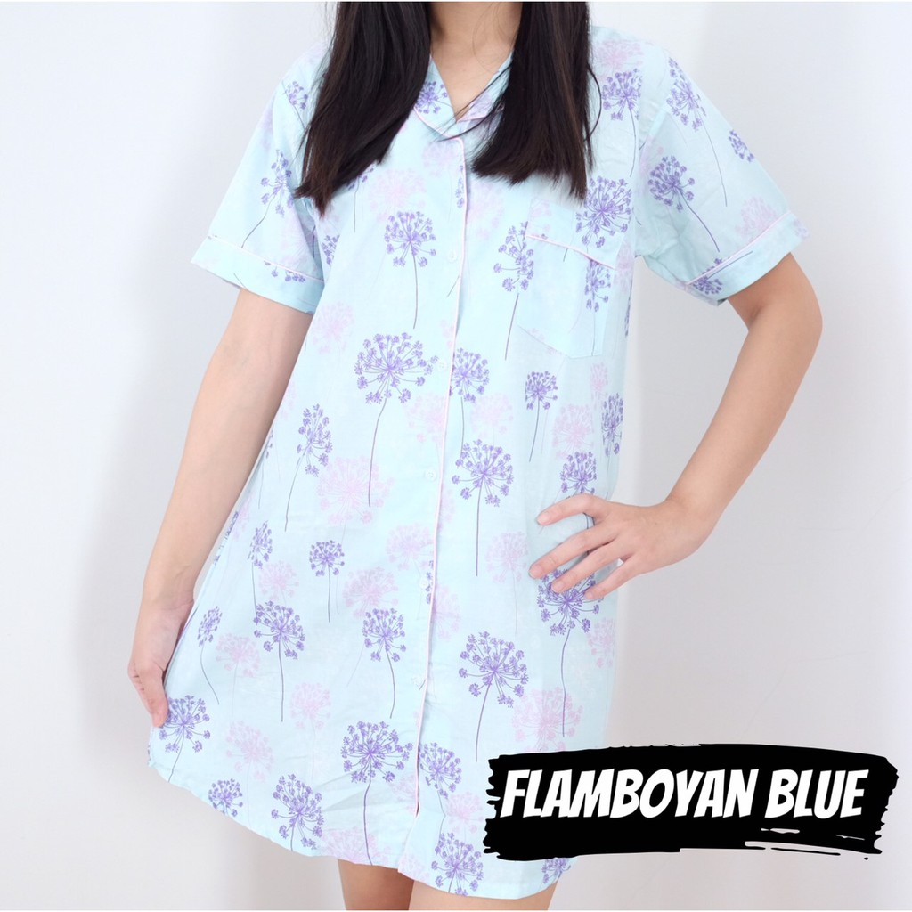 Piyama Flamboyan Blue Rok Piyama Wanita Katun Motif Bunga Murah