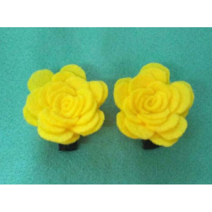 Jepit Rambut Anak Dan Dewasa Bunga Mawar Flanel Cantik Kuning