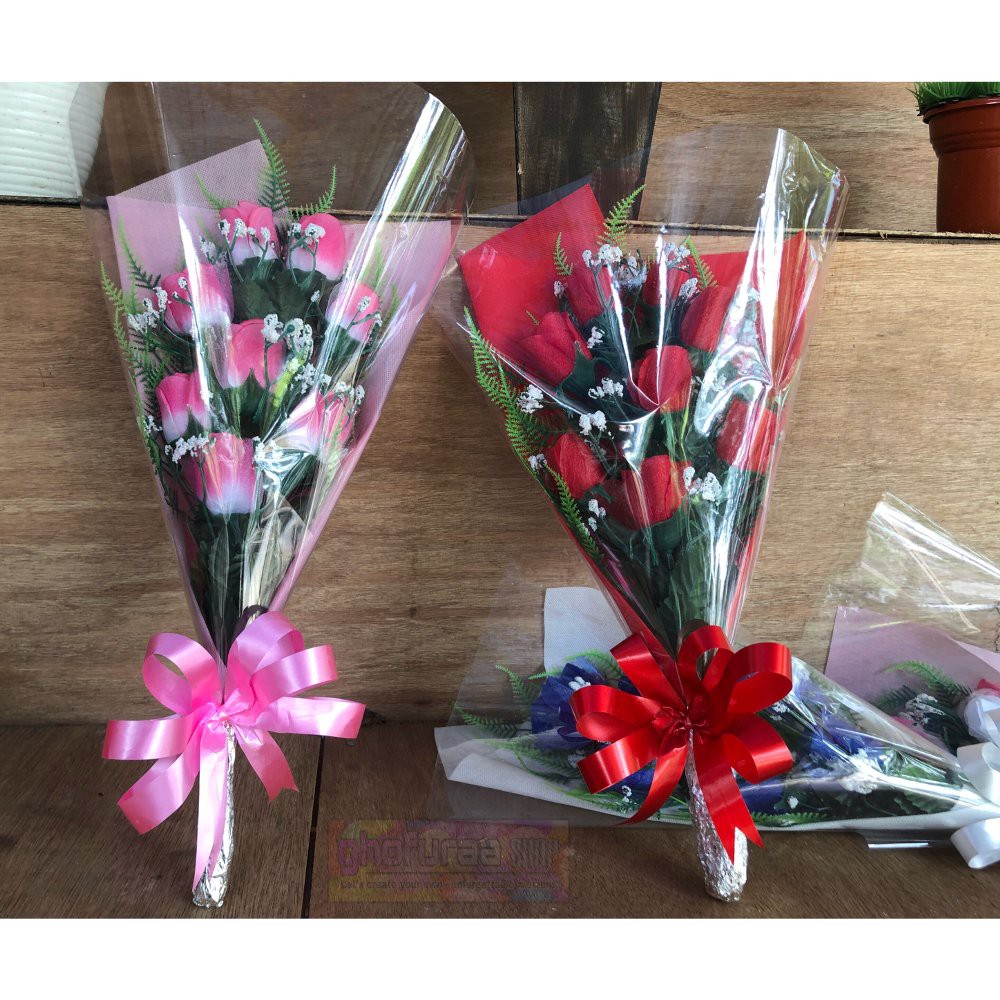 Bunga Mawar Buket Dan Kartu Ucapan Warna Merah Pink Putih Biru