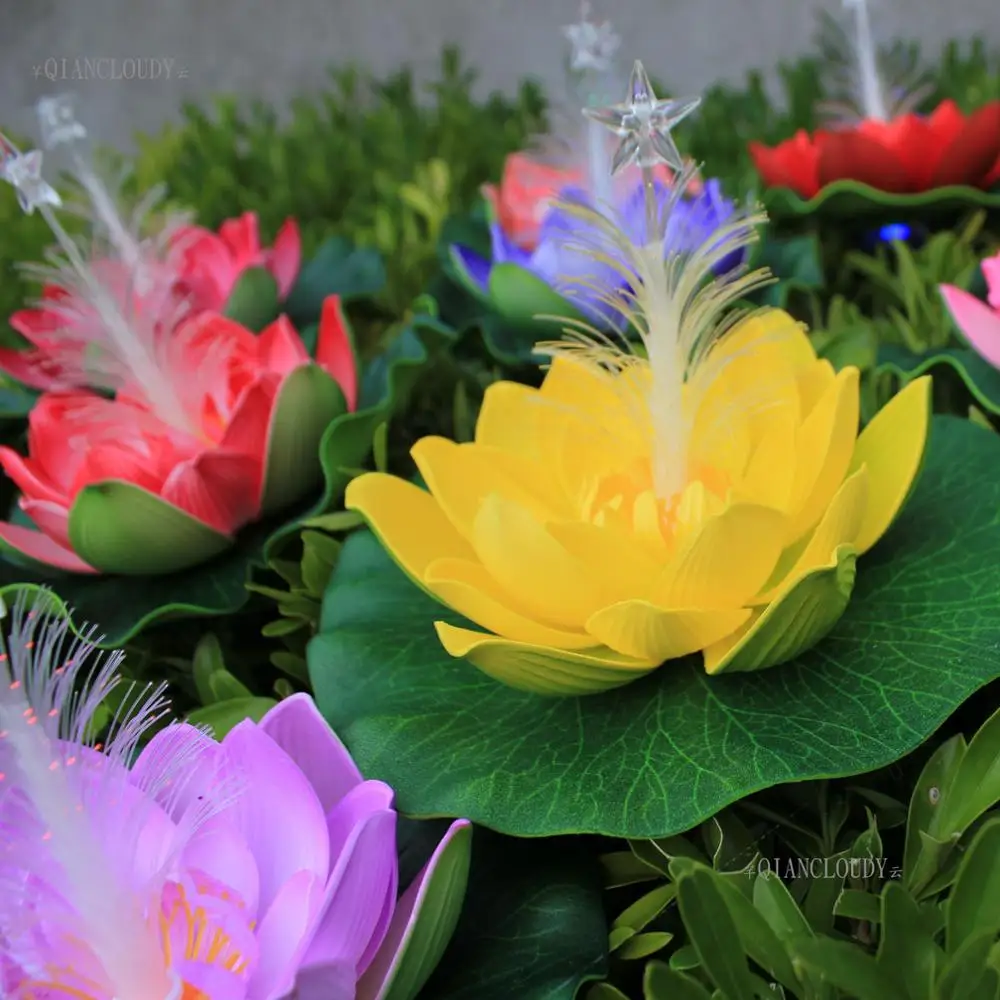 5 Pieces Kuning Serat Optik Lampu Led Kolam Bunga Busa Pe Buatan