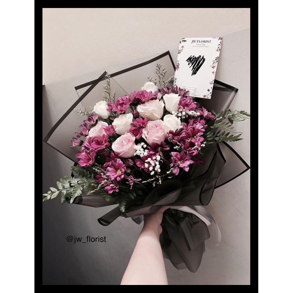 Hand Bouquet Buket Bunga Aster Mawar Cuci Gudang Shopee Indonesia