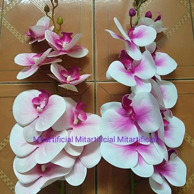 Rare Item Bunga Anggrek Kombinasi Putih Ungu Cantik Semi Latex