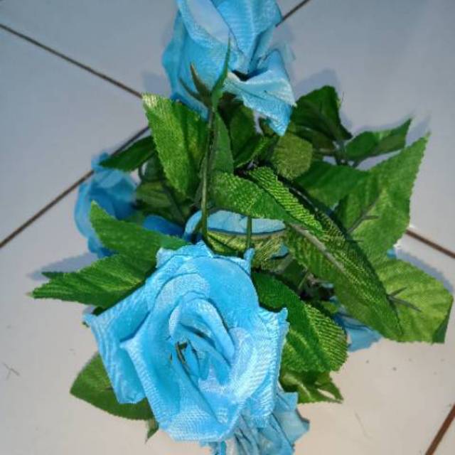 Promo Bunga Artificial Plastik Palsu Mawar Biru Muda Rambat