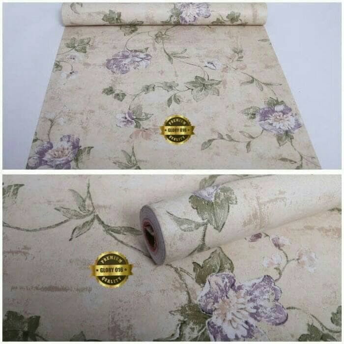 Wallpaper Dinding Krem Bunga Ungu Hijau Daun Shopee Indonesia