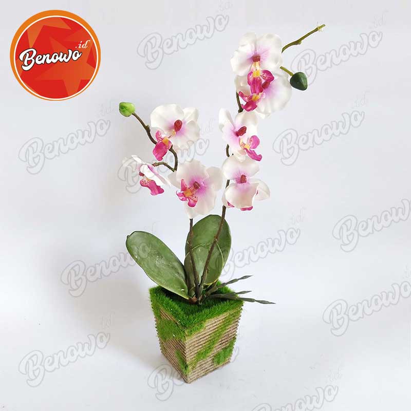 Pot Lumut Bunga Plastik Anggrek Bulan Dekorasi Artificial Shabby
