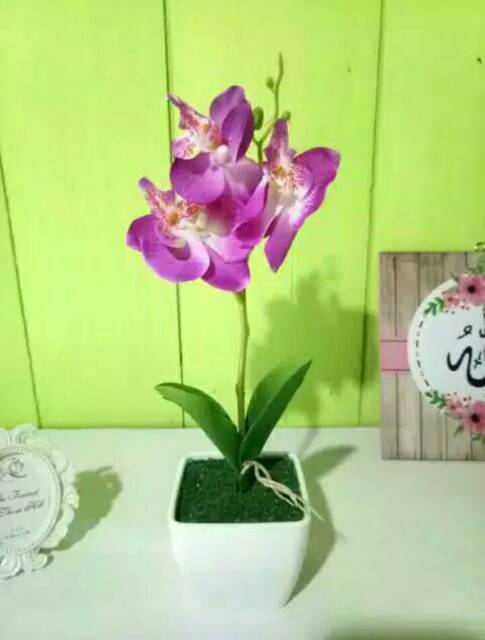 Bunga Anggrek Plastik Set Pot Dekorasi Shopee Indonesia