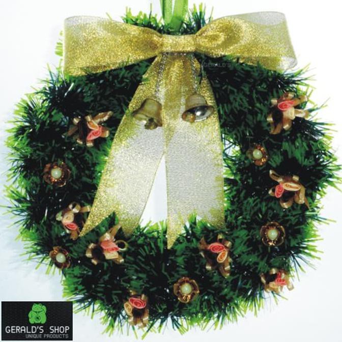 Karangan Bunga Hiasan Natal Gold Christmas Wreath Pohon Natal