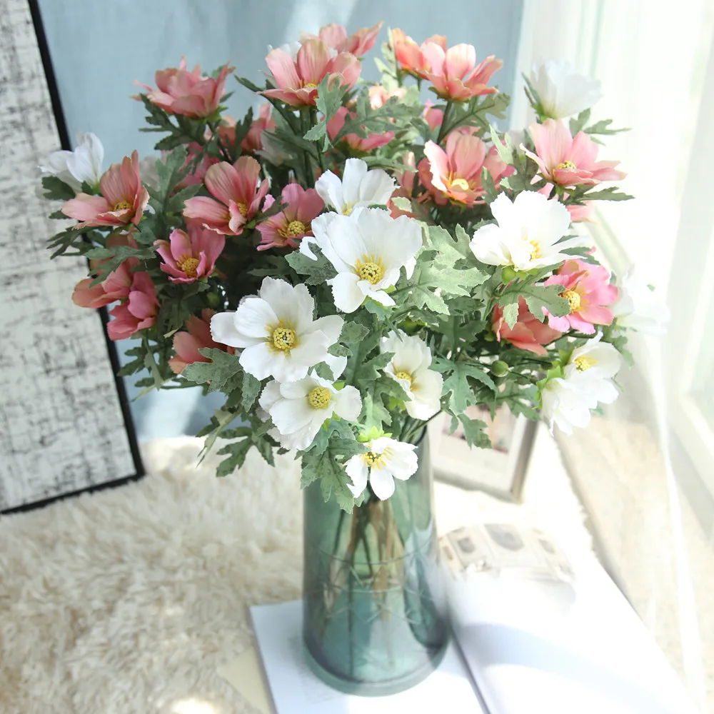 Pink Peony Sutra Bunga Buatan Daisy Bunga Krisan Daun Pernikahan