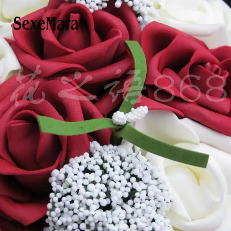 Buket Mawar Merah Bouquet Putih Karangan Bunga Pernikahan Burgundy